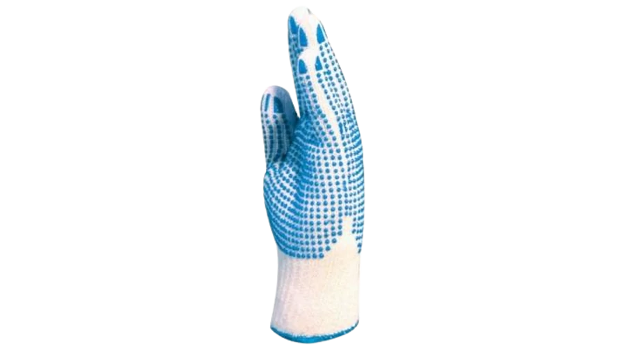 Férfiaknak szánt poliészter/pamut pontozott kötött cérnakesztyű. Mindkét oldalon csúszás elleni pöttyök találhatóak, így mindkét oldalán használható a könnyebb munkavégzés érdekében. Gumírozott mandzsettával, ráadásul hosszabb élettartammal is rendelkezik.