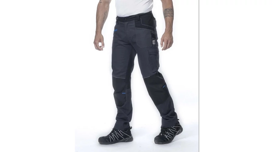 - a nadrág D-gyűrűvel van felszerelve karabinerhez, 2 mély, Oxford anyaggal megerősített paszpartus zsebbel, 1 elülső cipzáras zsebbel, 1 elülső szerszámos zsebbel széles hurokkal.