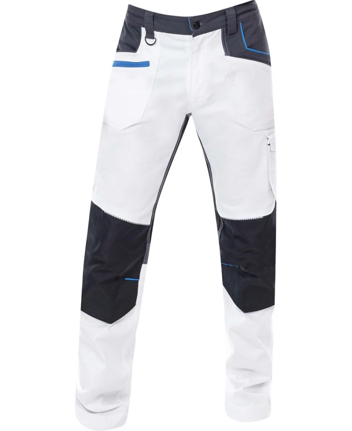 - a térdrész dupla, tartós Oxford anyagból készült, vízlepergető bevonattal, térdvédő zsebbel, rugalmas derékgallérral és rejtett hátsó dupla hurokkal van ellátva az öv kényelmes illeszkedése érdekében.