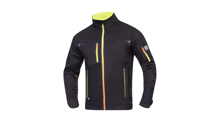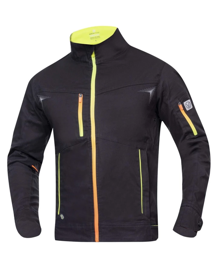 - Teljes hosszúságú, állvédős cipzárral, 1 cipzáras mellzsebbel, 1 cipzáras zsebbel a bal ujjon, 2 cipzáras oldalsó zsebbel van felszerelve,