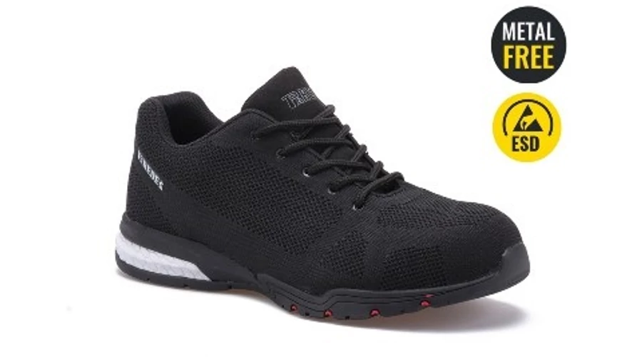 K-Nit felsőrésszel készült, fémmentes sportos megjelenésű biztonsági cipő, magas kopásállósággal.