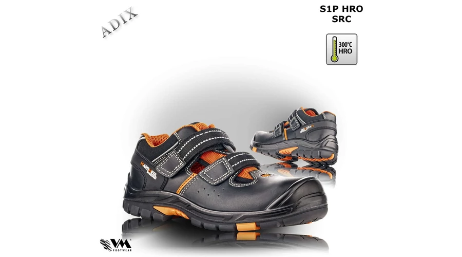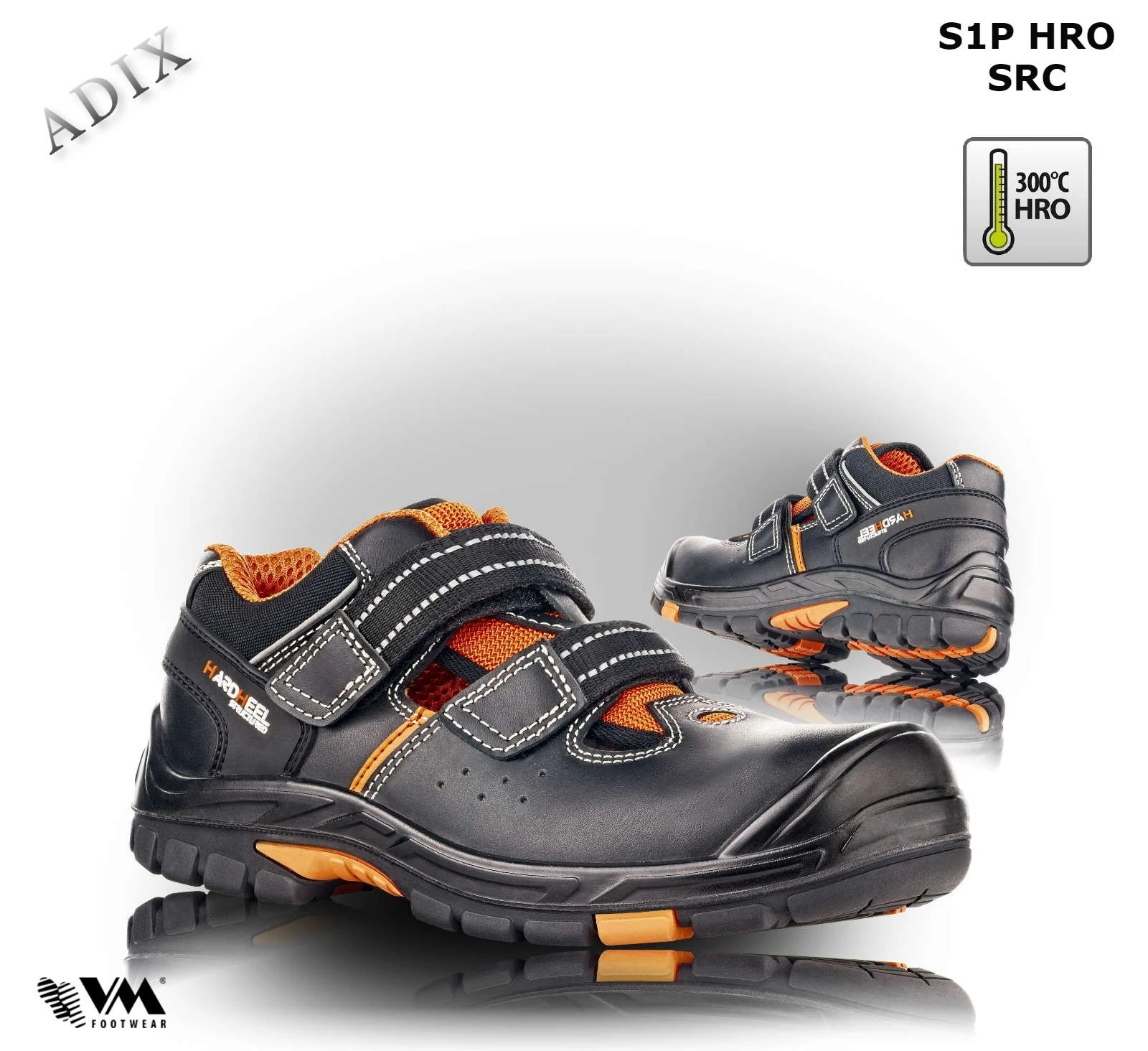 Kényelmes minőségi munkavédelmi szandál, kompozit orrvédelemmel és 300°C kontakt hőhatás ellen védelemmel, S1P HRO SRC.
