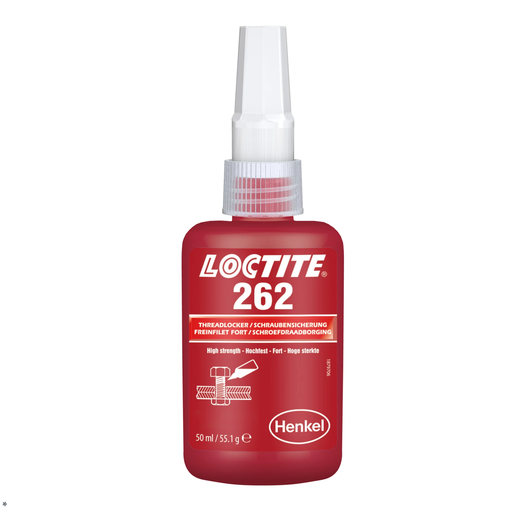 A LOCTITE® 262 egy vörös színű, általános felhasználási célú, közepes/nagy szilárdságú, tixotróp, metakrilát bázisú csavarrögzítő termék. Jellemző rögzítési idők 15, 8 és 180 perc acélon, sárgarézen és rozsdamentes acélon. A termék fluoreszkál, ami lehetővé teszi jelenlétének UV fénnyel történő ellenőrzését. Ideális megoldás olyan alkalmazásokhoz, ahol a termék felvitel utáni elfolyását meg kell akadályozni. Ipari olajokkal enyhén szennyezetett felületeken is alkalmazható. Fém menetek rögzítésére alkalmas.