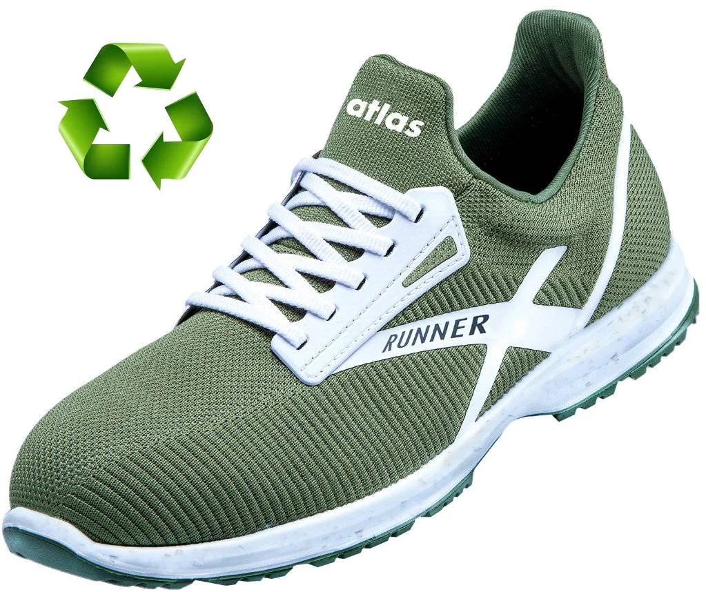 Európa vezető munkacipő-gyártójának Atlas cipői rendkívül könnyűek és mindenekfelett kényelmesek. Az ATLAS munkavédelmi lábbelik a prémium dizájnnal, csúcstechnológiás felsőrésszel és innovatív talptechnológiával a biztonsági cipők teljesen új járási élményét nyújtják. Az Atlas Runner 75 újrahasznosított munkavédelmi félcipő egy háromszorosan zöld munkavédelmi lábbeli. A felsőrész, középtalp és a talpbetét egy innovatív anyagokból készül illetve a újszerű intelligens gyártási folyamatok alkalmazásával hatékonyabb anyagfelhasználás érnek el.