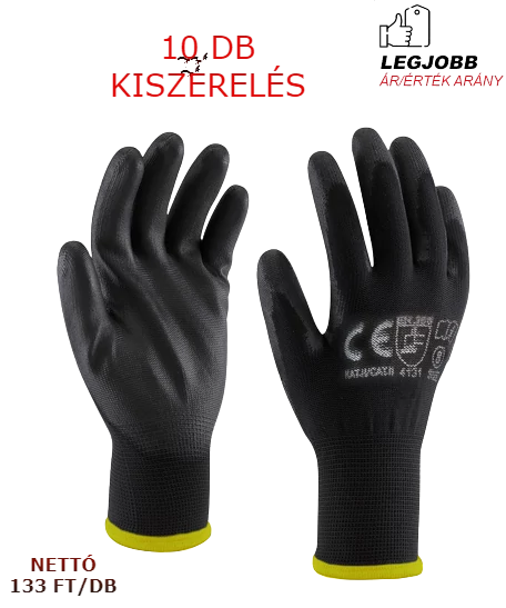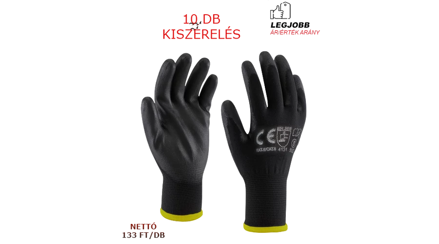 - tenyér és ujjak vékony fekete poliuretán bevonatúak